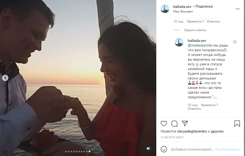 Помолвка на яхте. Оля и Дима.