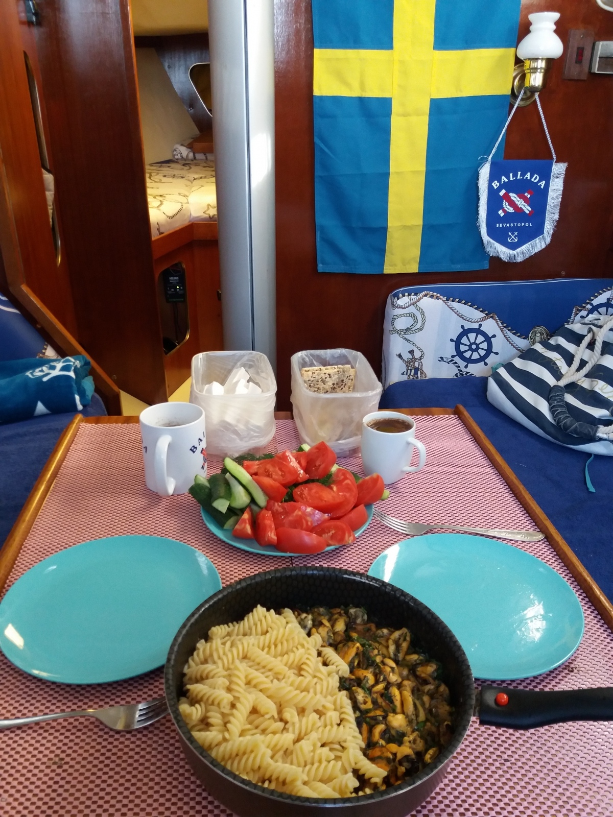 Стол в каюте и зоне отдыха (кокпите).
